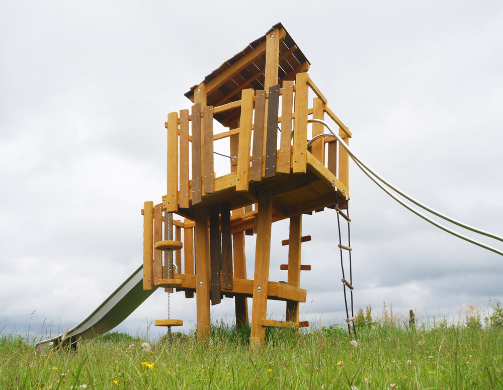 Het speeltoestel is gemaakt van hardhout met FSC keurmerk. Het robuuste hout past goed in een natuurlijke omgeving.