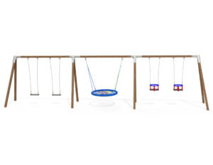 €4,120.00 SchommelEen unieke houten schommel voor op het schoolplein of recreatiepark. Veel speelplezier voor alle leeftijden. De traditionele schommel voor de kleine kinderen en de nestschommel voor de grotere. Alle bevestigingsmaterialen en kettingen zijn vervaardigd uit roestvast staal.